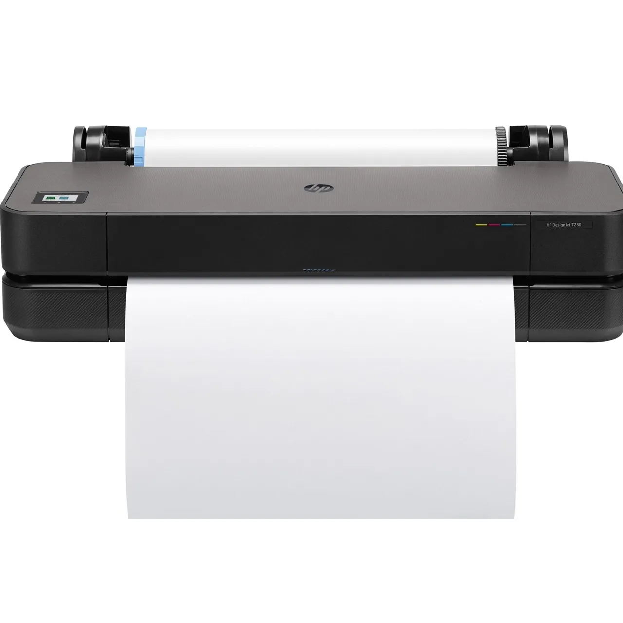 HP DesignJet T230 24‑inch printer + stand combo (5HB07D‑STAND) with up to 2400 × 1200 dpi print quality, fast A1 output, roll and sheet media support, Wi‑Fi/Ethernet/USB connectivity, automatic cutter, and ergonomic printer stand for professional CAD, poster, and graphics workflows.