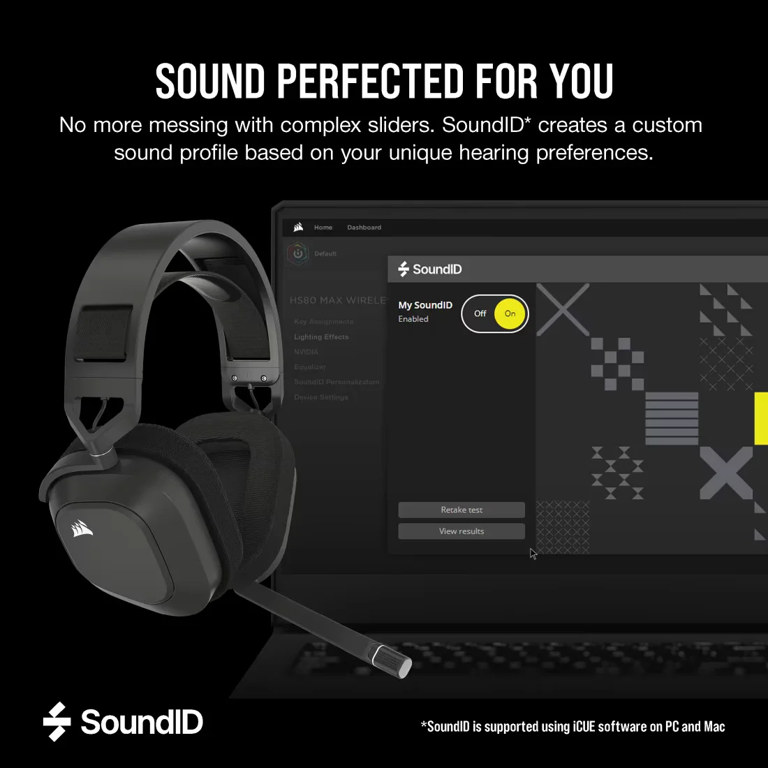 Powerful CORSAIR iCUE software enables custom audio equalizer settings, SoundID personalized audio, Dolby Audio 7.1 surround sound, and more.Â