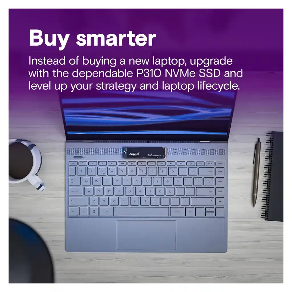 - Power-to-performance comparison measured between 1TB+ Crucial P3 Plus and P310 PCIe® 4.0 NVMe SSDs. Your performance may vary.