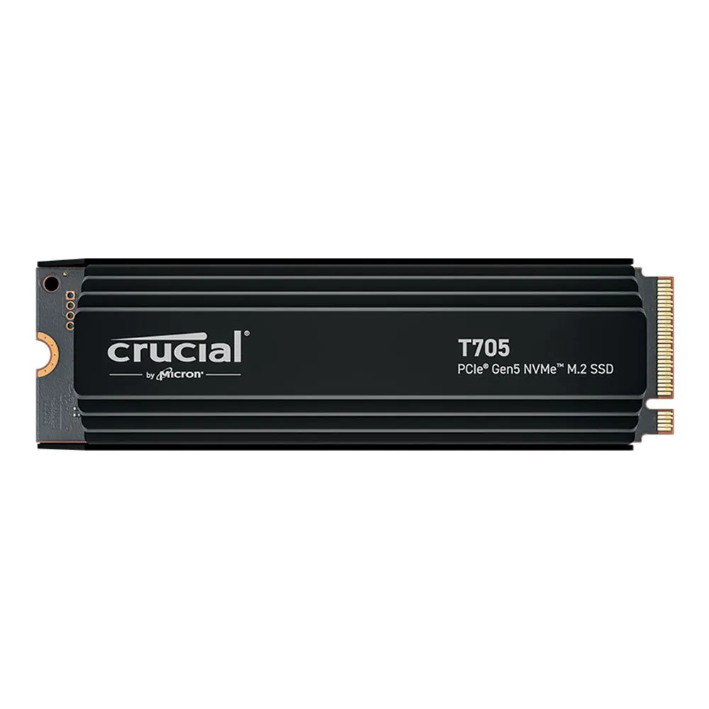 The Crucial T705 1 TB (CT1000T705SSD5) is a high-speed NVMe SSD that brings Gen 5 performance to your system, with an integrated premium aluminum + copper heatsink for efficient thermal management. According to Crucial, it supports PCIe 5.0 ×4 and delivers sequential read speeds up to 13,600 MB/s and write speeds up to 10,200 MB/s.