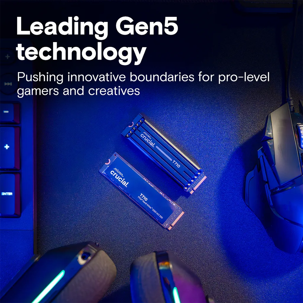 The Crucial T710 1 TB (CT1000T710SSD8) is a cutting-edge PCIe Gen 5 NVMe solid-state drive made for gamers, content creators, and high-performance systems. With a PCIe 5.0 ×4 interface, it achieves sequential read speeds up to 14,900 MB/s and sequential write speeds up to 13,700 MB/s, according to Crucial.
