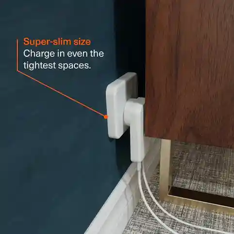 - Super-slim size: Charge in even the tightest spaces. With a flush-fit design, this Slim Wall Chargers is 56% smaller in depth than the standard 30W charger, so there’s no corner of your home you can’t power.