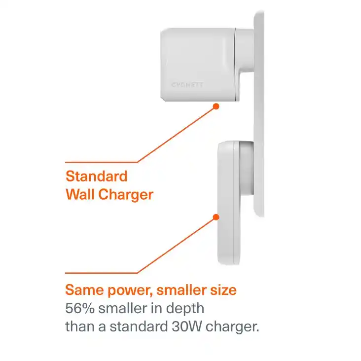 Cygnett ChargePlus 30W Dual Port GaN Slim Wall Charger – White – CY5486PDWCH