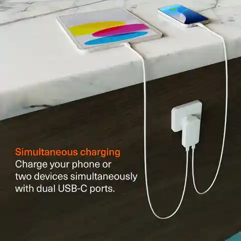 - Simultaneous charging: Charge your phone or two devices at the same time with dual USB-C ports.