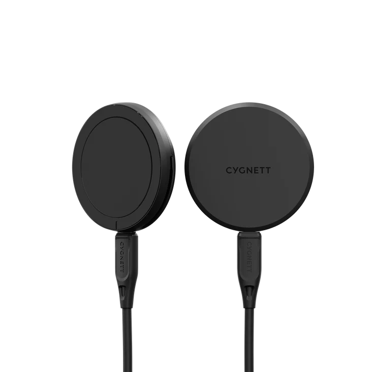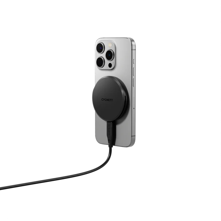 Cygnett ChargePuck Qi2 15W Wireless Charger – Black provides fast magnetic wireless charging with Qi2 support, built-in magnetic alignment, compact design, 1.2 m USB-C cable, and a 2-year warranty.