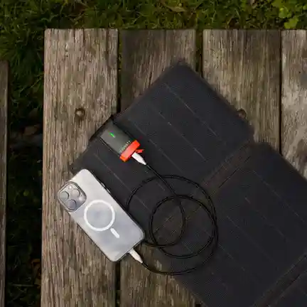 Harness the sun’s power with four high-efficiency ETFE solar panels, designed for exceptional durability and reliable energy conversion. These panels perform optimally even in challenging conditions, resisting UV radiation, extreme temperatures, and harsh weather. Wherever your adventures take you, this solar charger ensures consistent, dependable power. - Rapid Charging With USB-C