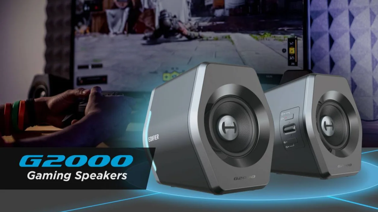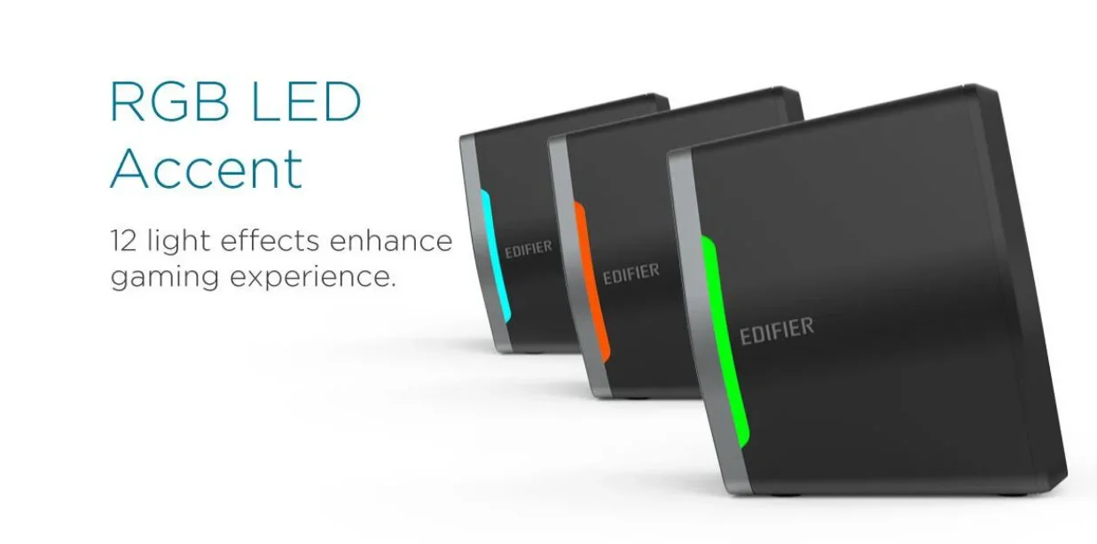 Experience immersive audio with Edifier G2000 RGB Bluetooth Gaming Speakers, featuring a 2.75-inch full-range unit, 16W RMS power, and column-shaped cabinet with backward mega bass port. Switch effortlessly between Music, Game, and Movie sound modes. Enjoy 12 light effects, adjustable volume, Bluetooth/USB sound card/AUX input, and a secure power adapter. Fast delivery Australia wide for all your gaming needs.