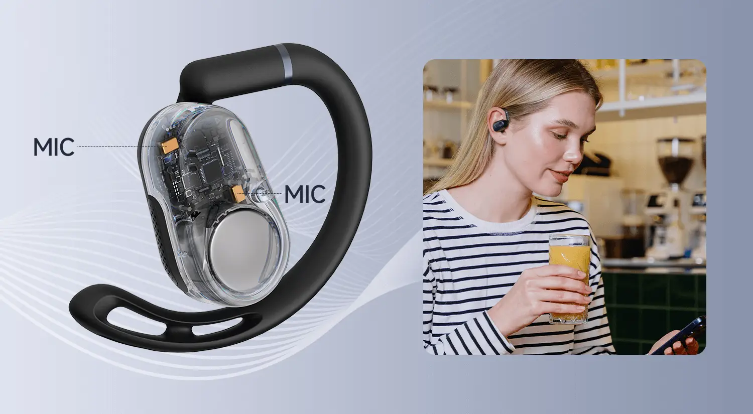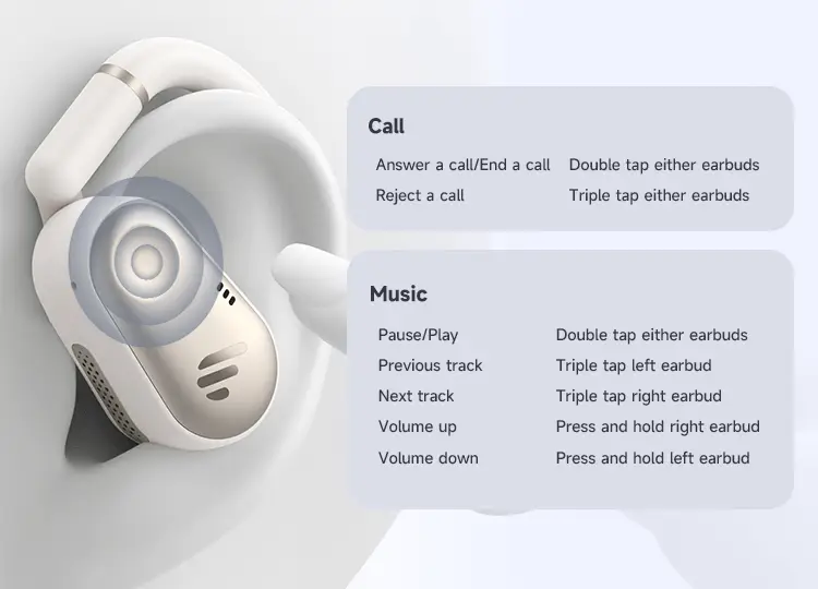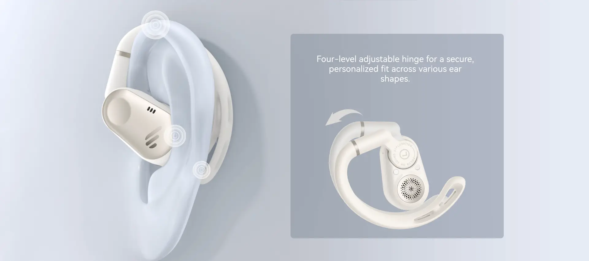 - Open-ear design with rotatable hooks ensures a secure, customizable fit for all-day comfort.