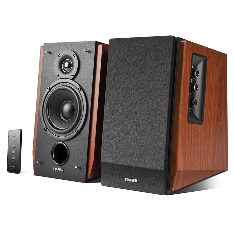 The Edifier R1700BT-Brown Bluetooth Bookshelf Speakers are premium-quality powered stereo speakers engineered to deliver rich, room-filling sound with the convenience of wireless Bluetooth connectivity and multiple wired input options. Featuring a classic wooden MDF enclosure with a warm brown finish, this 2.0 active speaker system brings powerful, detailed audio with enhanced bass response thanks to its front-facing bass reflex port and dual driver design. With high-performance Class-D amplification, DSP & DRC sound tuning, Bluetooth V5.1 streaming, dual RCA inputs, and intuitive controls (plus a wireless remote), the R1700BT-Brown is ideal for music, movies, games, and more.