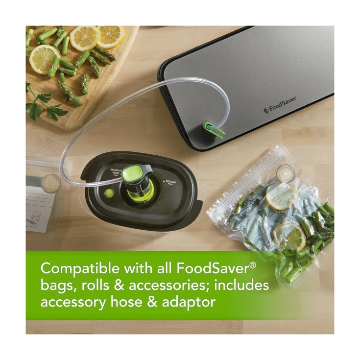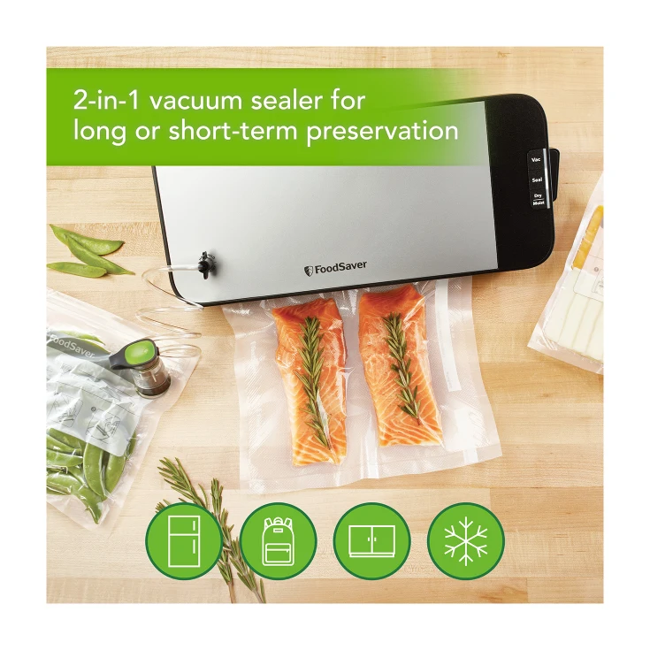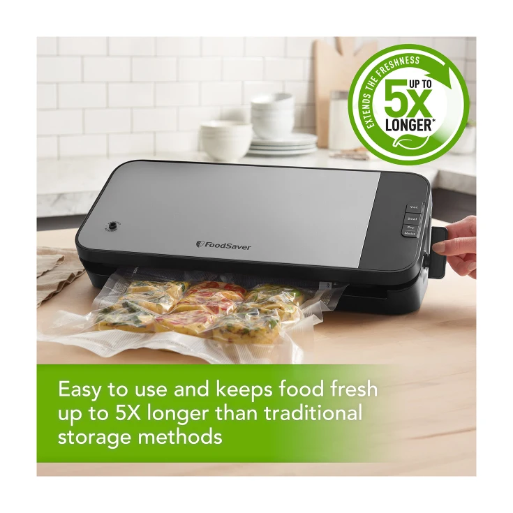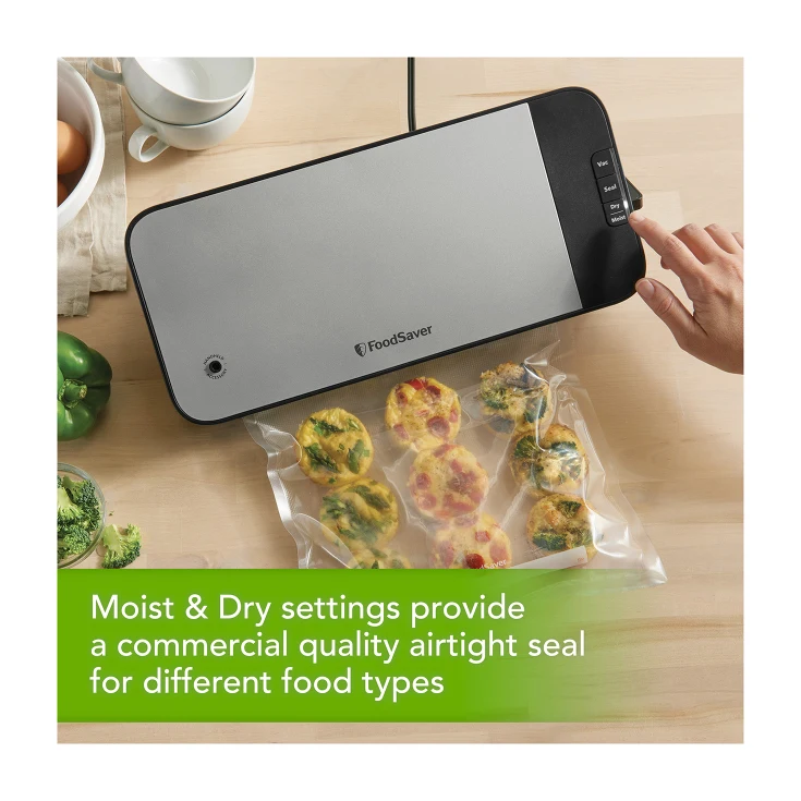 FoodSaver Cut & Seal Machine is a Commercial Quality Vacuum Seal. On Board Roll Storage & Cutter. Moist & Dry Settings. Includes an accessory hose adaptor to vacuum seal FoodSaver containers and requsable vacuum zipper bags
