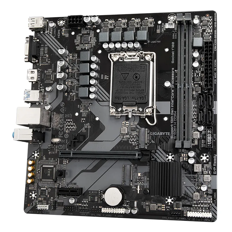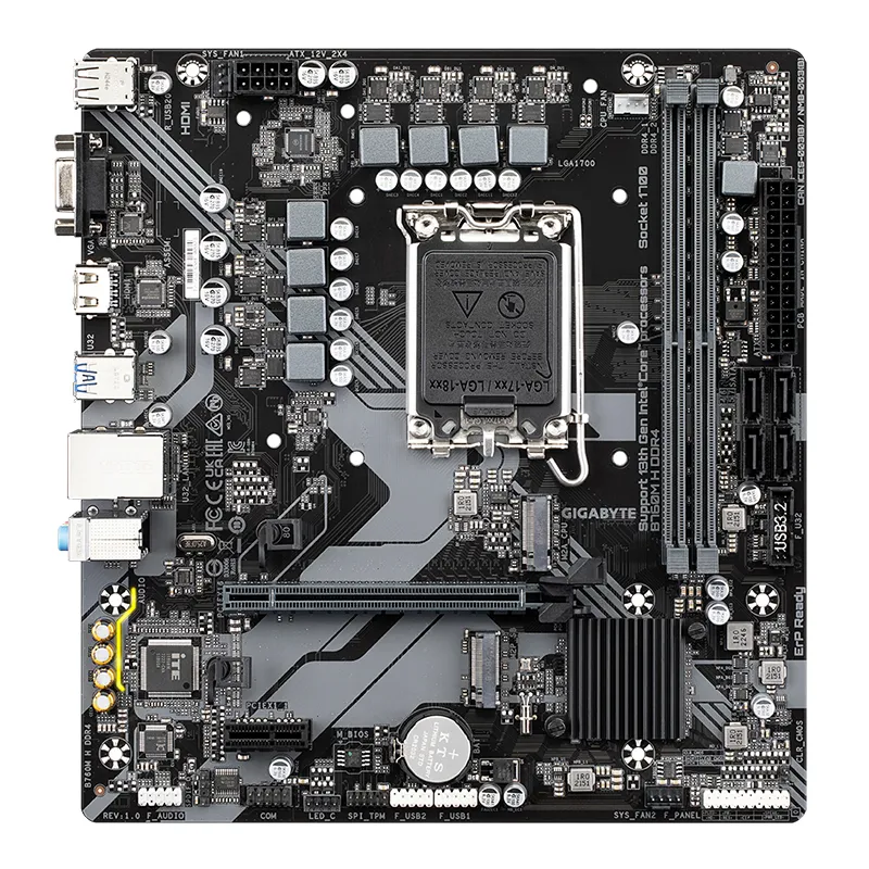 The GIGABYTE B760M H DDR4 is a Micro-ATX motherboard built on the Intel® B760 Express chipset, offering broad compatibility with Intel 12th, 13th, and 14th Gen Core, Pentium® Gold, and Celeron® processors via the LGA1700 socket. It supports up to 64 GB of dual-channel DDR4 memory with XMP profiling and delivers modern connectivity with USB 3.2 Gen1, dual PCIe 4.0 M.2 slots, integrated 1 GbE LAN, and multiple display outputs (HDMI and D-Sub). The board’s compact footprint and solid expansion make it ideal for mainstream gaming, productivity, and home PC builds.