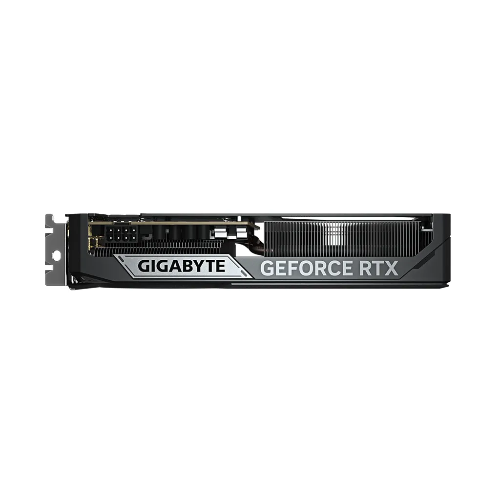 The card’s dual-fan WINDFORCE 2X cooler uses aerodynamic “Hawk” fans, alternate spinning to reduce turbulence, a copper base plate + composite heatpipes, and server-grade thermal conductive gel to optimize heat transfer from GPU, VRAM, and VRMs. The design ensures stable temperatures under sustained workload while keeping noise levels low.