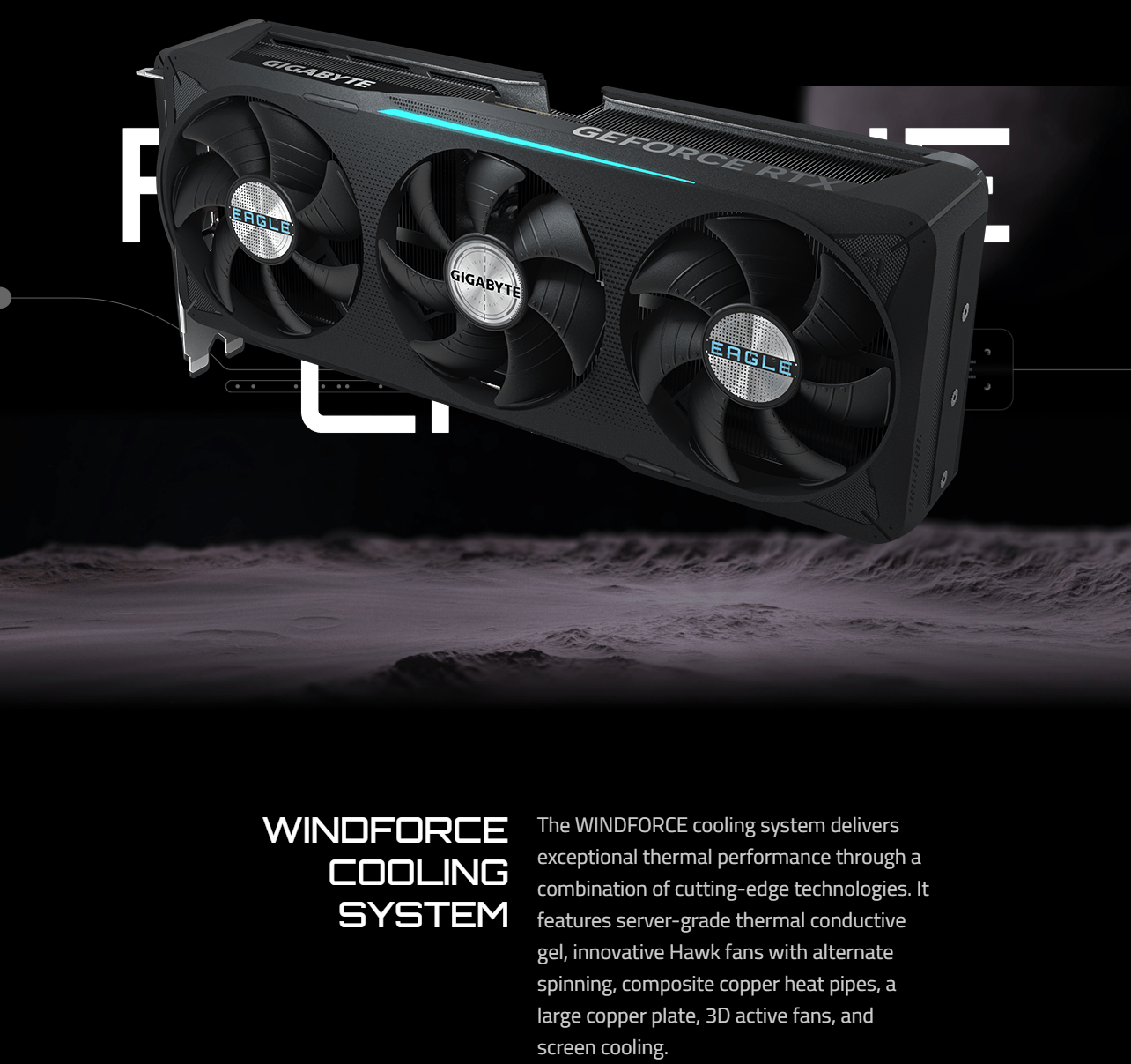 The Gigabyte GeForce RTX 5070 EAGLE OC 12GB (GV-N5070EAGLE OC-12GD) is a modern, high-performance graphics card based on NVIDIA’s Blackwell architecture, aimed at gamers, content creators, and PC builders who want a powerful yet reasonably compact GPU. With 12 GB of high-speed GDDR7 VRAM on a 192-bit memory interface, a factory overclocked core clock, and support for the latest graphics technologies (real-time ray tracing, AI-enhanced features, DLSS 4), this card balances strong 1440p / 4K gaming performance with efficiency and future-ready features. Its “EAGLE” design — with a tailored cooling system and compact small-form-factor (SFF) friendly form-factor — makes it a solid option for both high-end and mid-range builds, including smaller cases.