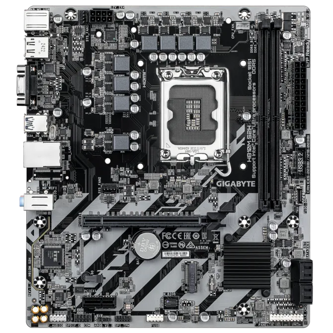 GIGABYTE (H810M S2H) Intel Core Ultra (Series 2) LGA 1851 Motherboard, mATX, DDR5, 1x M.2, PCIe 4.0, USB 3.2 Gen1, 1GbE LAN, EZ-Latch