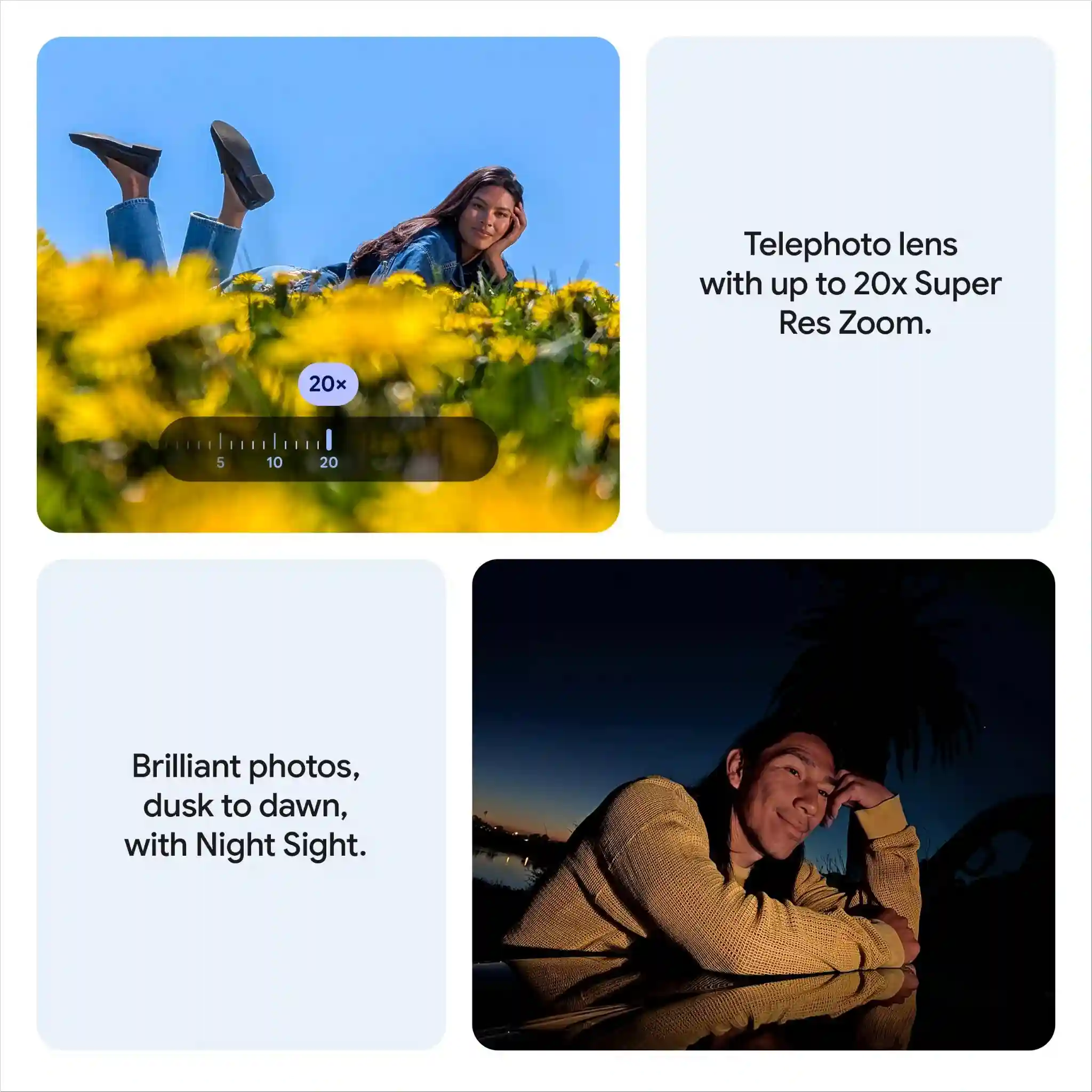 Google Tensor G5 chipset with Titan M2 security coprocessor and 12 GB RAM for efficient performance, AI features, and intelligent multitasking.Advanced Triple Camera System:
