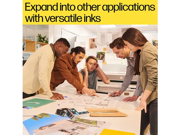 Produce professional looking technical drawings with fine line quality and excellent small letter clarity. Get your ideas across with outstanding hashes rendering fine detail on presentation panels and renders. Clearly communicate with bold blacks, distinguishable grays, and vivid colors using HP’s pigment technology. Expand into other applications, like posters, with versatile inks that accommodate different paper types.