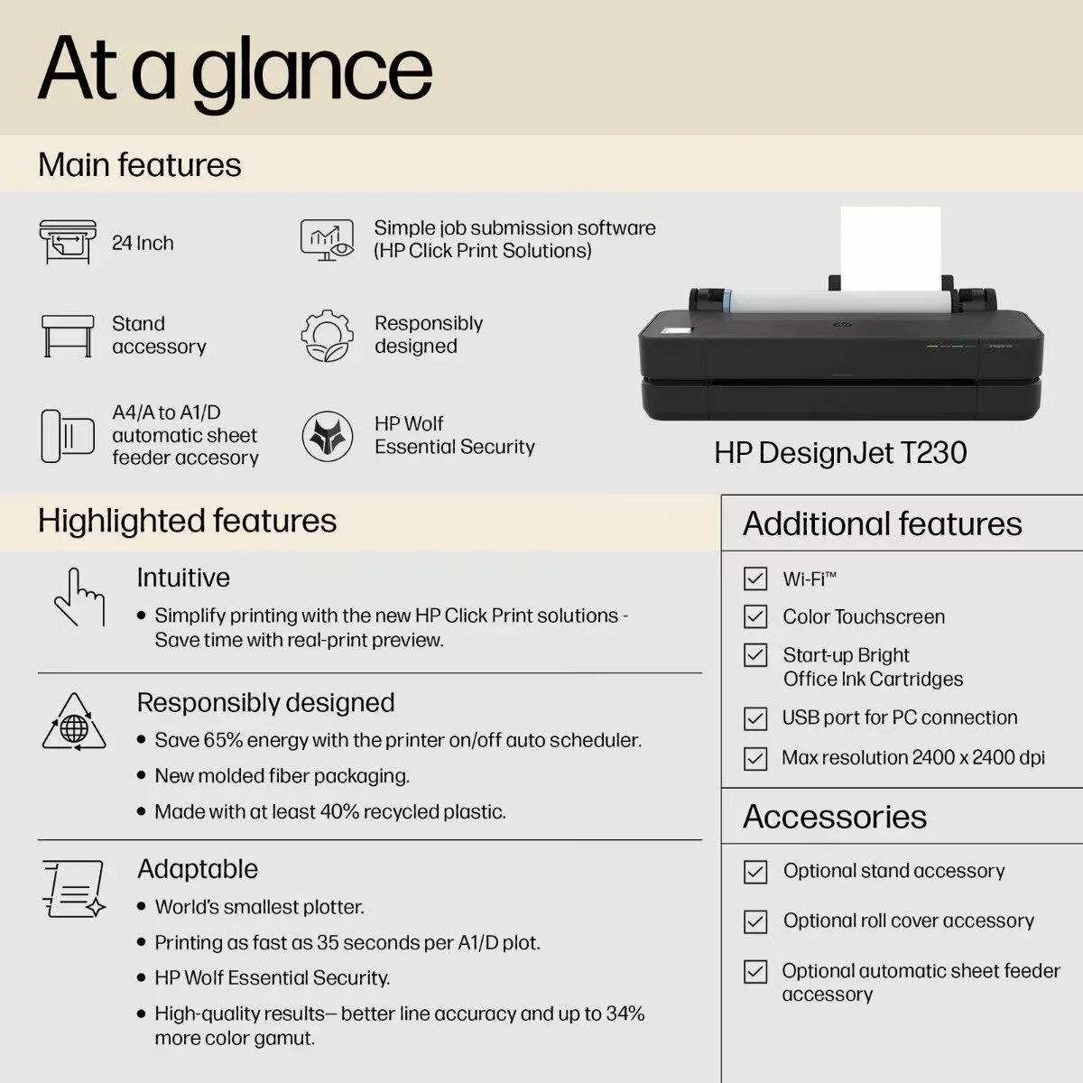 HP DESIGNJET T230 24 INCH PRINTER (DOES NOT INCLUDE STAND, ROLL COVER, AUTO SHEET FEEDER)