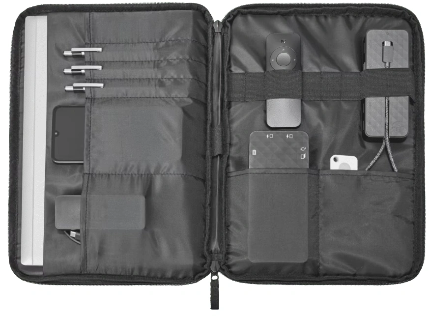 Stay organized with this clutter-free carry-all any time you need to move around, whether working from home or on the go. Numerous slip and zip pockets provide a secure home for your devices, peripherals and cables, plus a convenient cable pass-through keeps your phone, power bank or headphones connected while you are on the move.