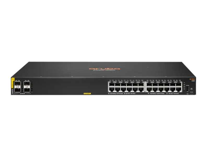 The HPE Aruba Networking CX 6100 Switch Series is a modern family of entry level access switches ideal for branch offices, mid-market enterprise, and SMB networks. Designed for reliable, simple, and secure access, the HPE CX 6100 switches provide a convenient wired access solution for enterprise networks supporting IoT, mobile, and cloud applications.