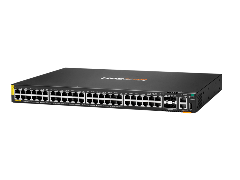 HPE Aruba CX 6200F 48-port PoE+ switch with PoE budge4×10G SFP+ uplinks and 740W t. High-performance Layer 3 managed switch ideal for enterprise and campus networks.