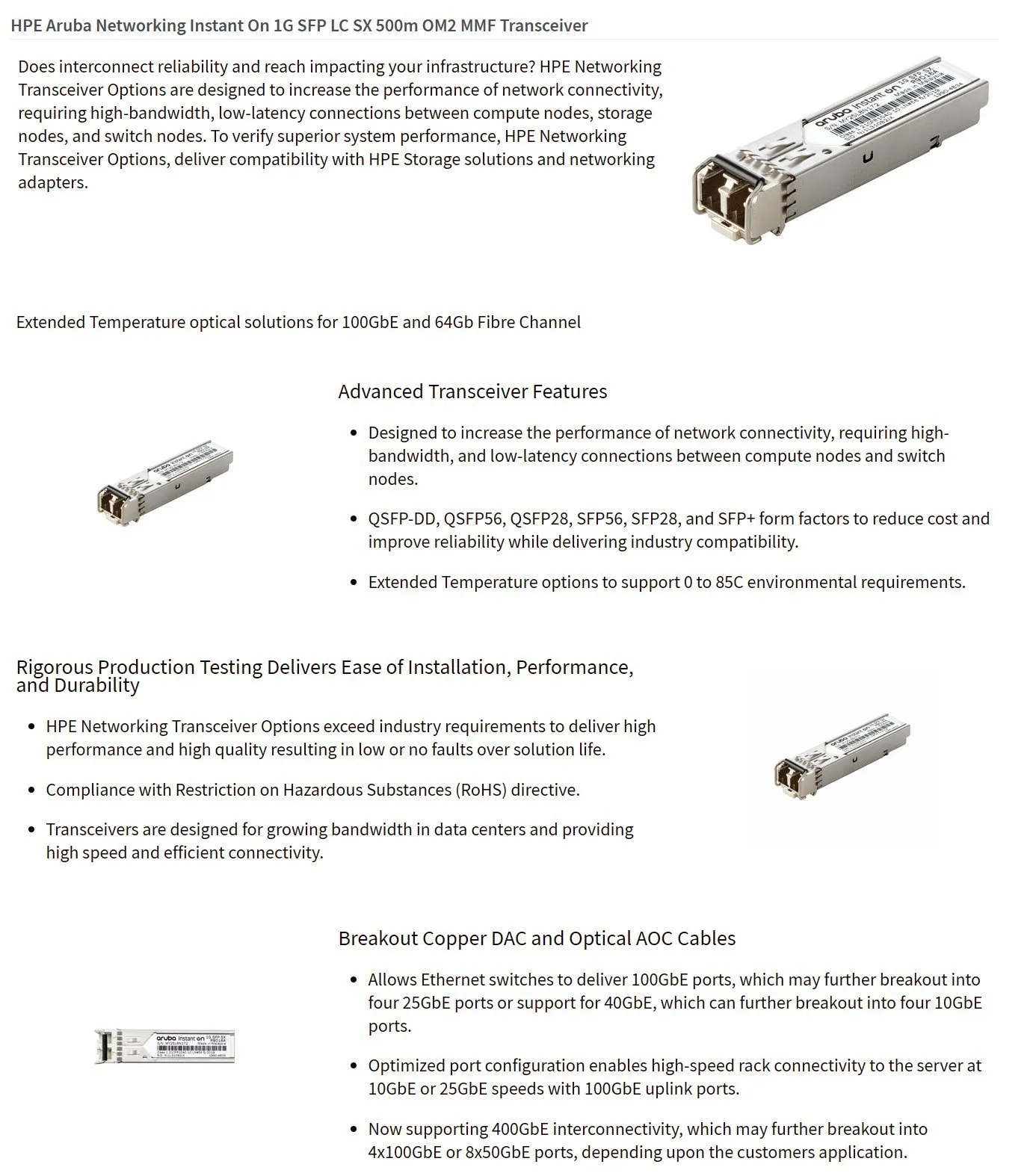 Be the first to review “HPE Networking Instant On 1G SFP LC SX 500m OM2 MMF Transceiver-R9D16A” Cancel reply