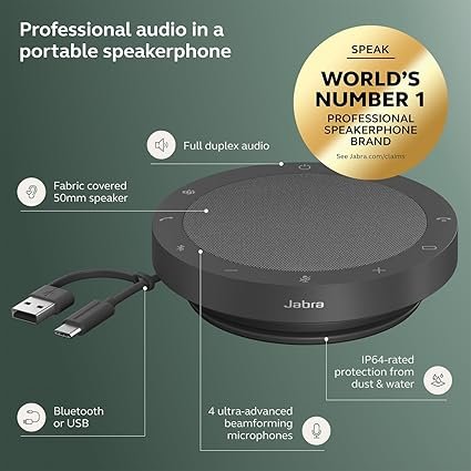 Elevate your audio experience with the Jabra Speak2 55 MS Speaker!  This powerhouse speaker boasts an omni-directional mic, picking up every voice with crystal clarity. Stay connected with seamless USB-A, USB-C, and Bluetooth options. Perfect for remote work, meetings, or calls, this speaker’s compact design packs a punch!