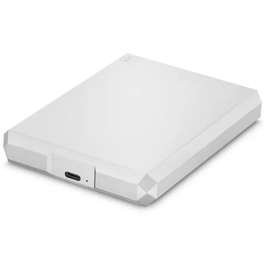 LaCie Mobile Drive 2 TB portable USB-C external hard drive with 2 TB capacity, sleek moon silver design, USB 3.2 Gen 1 connectivity, one-click backup software, and 3year warranty.Â