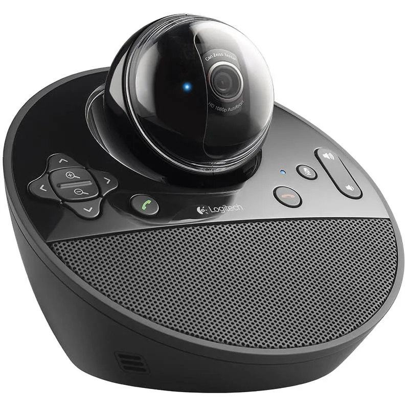 Logitech BCC950 960-000939—HD webcam and speakerphone combo for small rooms with 1080p video, noise-free audio, and universal conferencing compatibility. It combines a Full HD webcam, motorized pan-tilt camera, omnidirectional microphone, and full-duplex speakerphone into a compact, plug-and-play device.