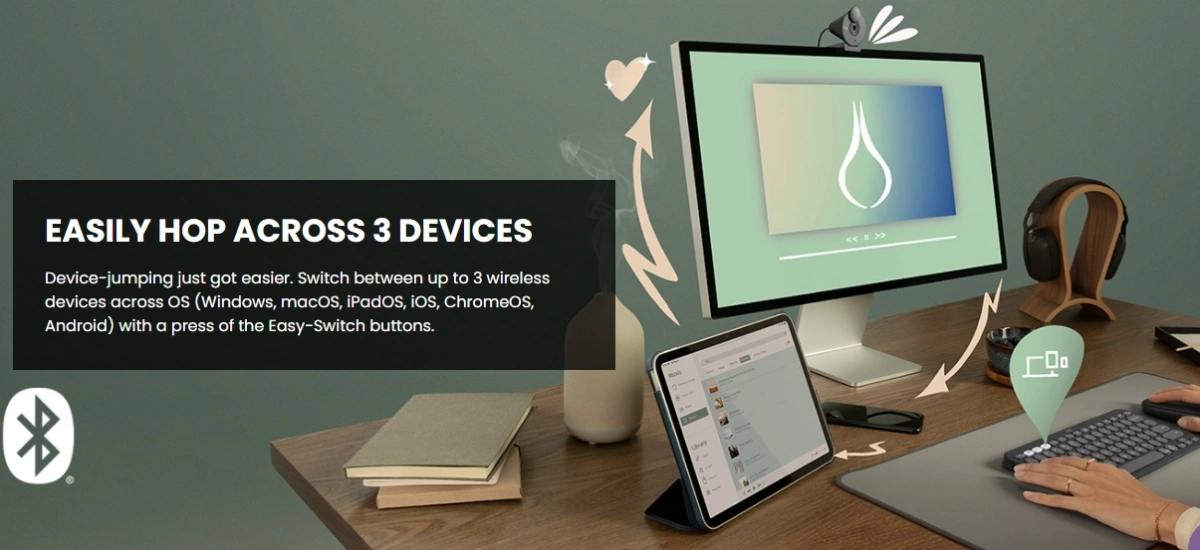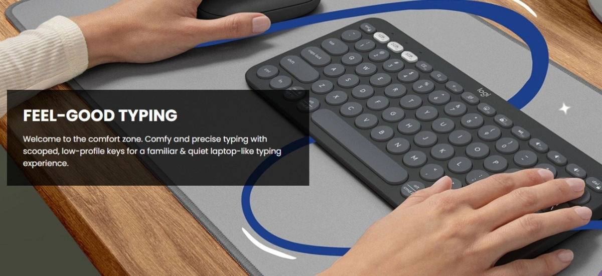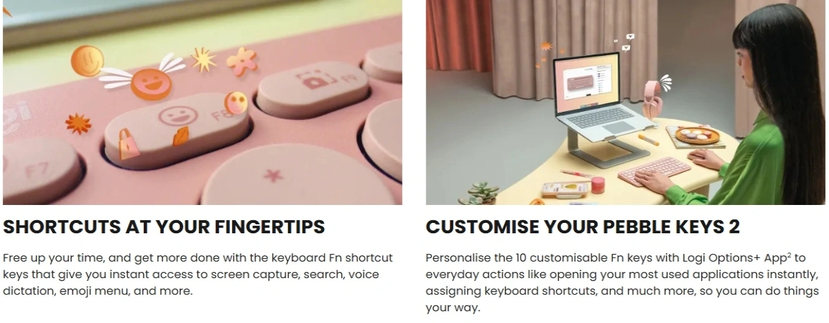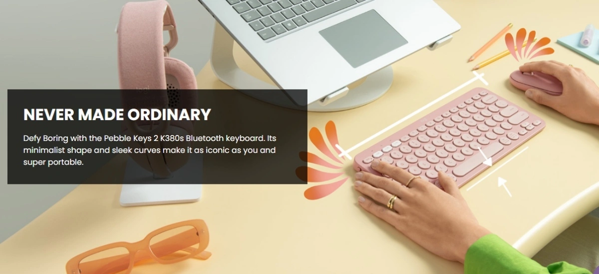 Logitech Pebble Keys 2 K380s slim wireless Bluetooth keyboard with quiet low-profile keys, multi-device pairing, customisable shortcuts, 36-month battery life, and wide OS compatibility.1 year Warranty
