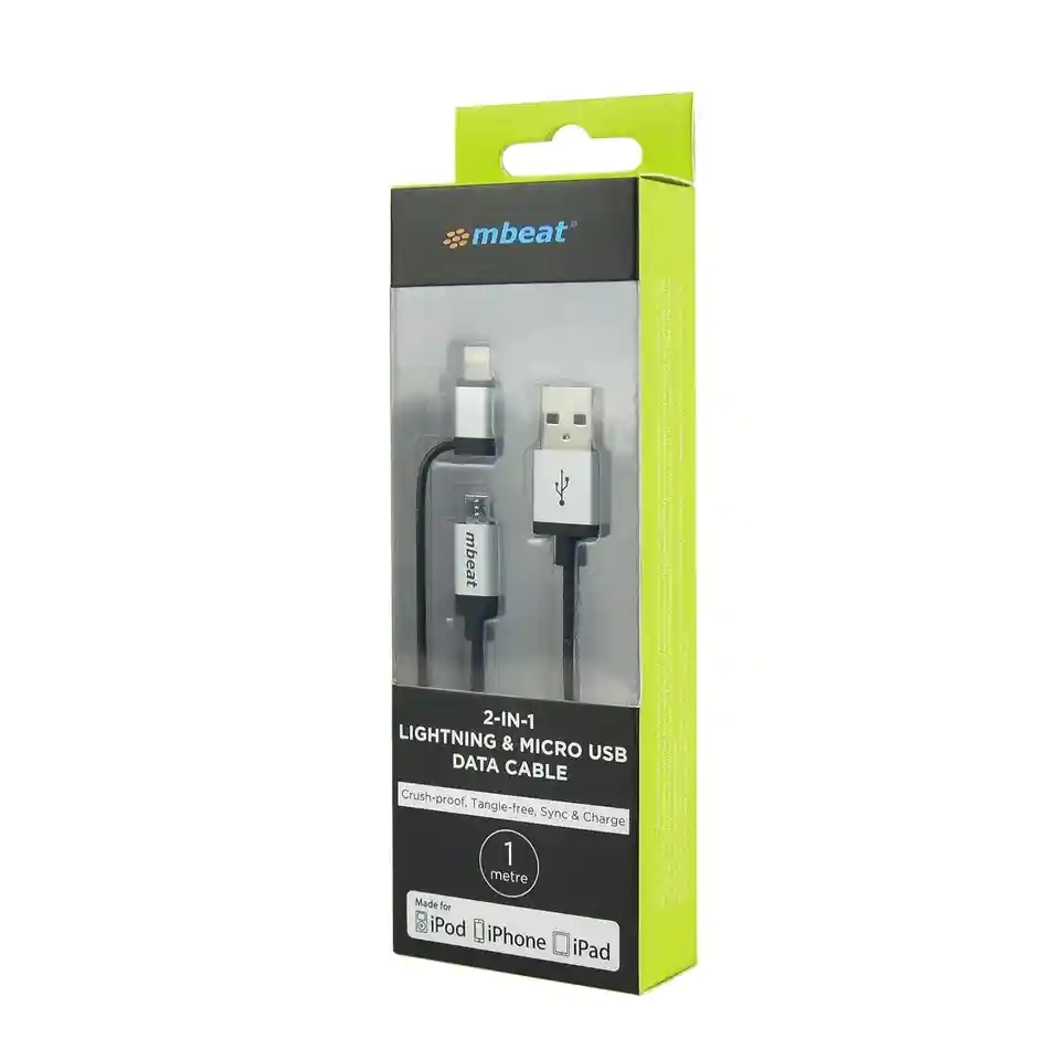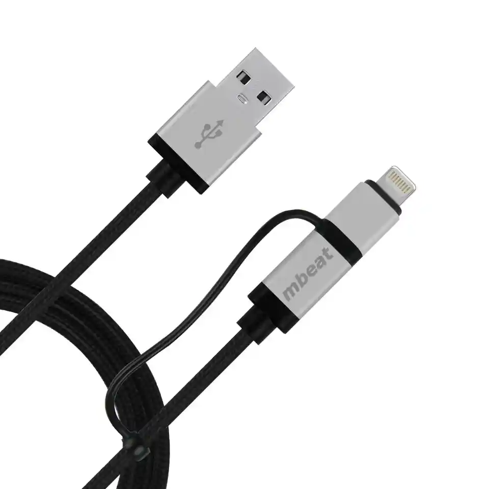 mBeat MB-ICAB21-1S Lightning with Micro USB Data Cable (1M) offers a convenient 2-in-1 solution for charging and data syncing Apple Lightning and Micro USB devices using a single durable cable.