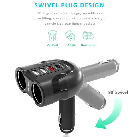90 degrees rotation design, versatile and form fitting, compatible with a wide variety of vehicle cigarette lighter sockets.