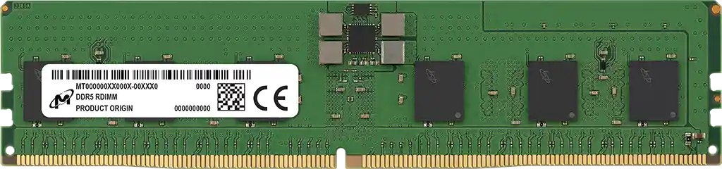 The Micron DDR5 RDIMM is engineered to deliver superior performance and reliability for modern servers. It features a register chip that efficiently directs data commands and manages data flow within the server. With integrated ECC parity, it helps prevent data errors, enhancing overall system reliability. Optimized for the latest Intel® and AMD® based servers.Â