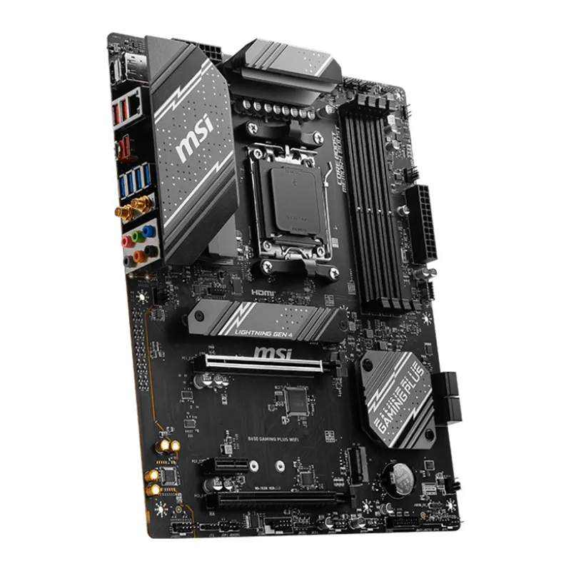 The MSI B650 GAMING PLUS WIFI is a powerful ATX gaming motherboard built on the AMD B650 chipset for modern AM5-socket Ryzen processors. It supports AMD Ryzen™ 7000 / 8000 / 9000 Series CPUs and high-speed DDR5 memory, delivering excellent performance for gaming, productivity, and creative workflows. Featuring robust power delivery, advanced cooling, multiple PCIe 4.0 expansion slots, and lightning-fast connectivity with Wi-Fi 6E, Bluetooth 5.3, and 2.5G Ethernet, it’s ideal for high-end builds without breaking the bank. The board also includes Gen4 M.2 storage, comprehensive I/O options, and enhanced audio for immersive multimedia experiences.