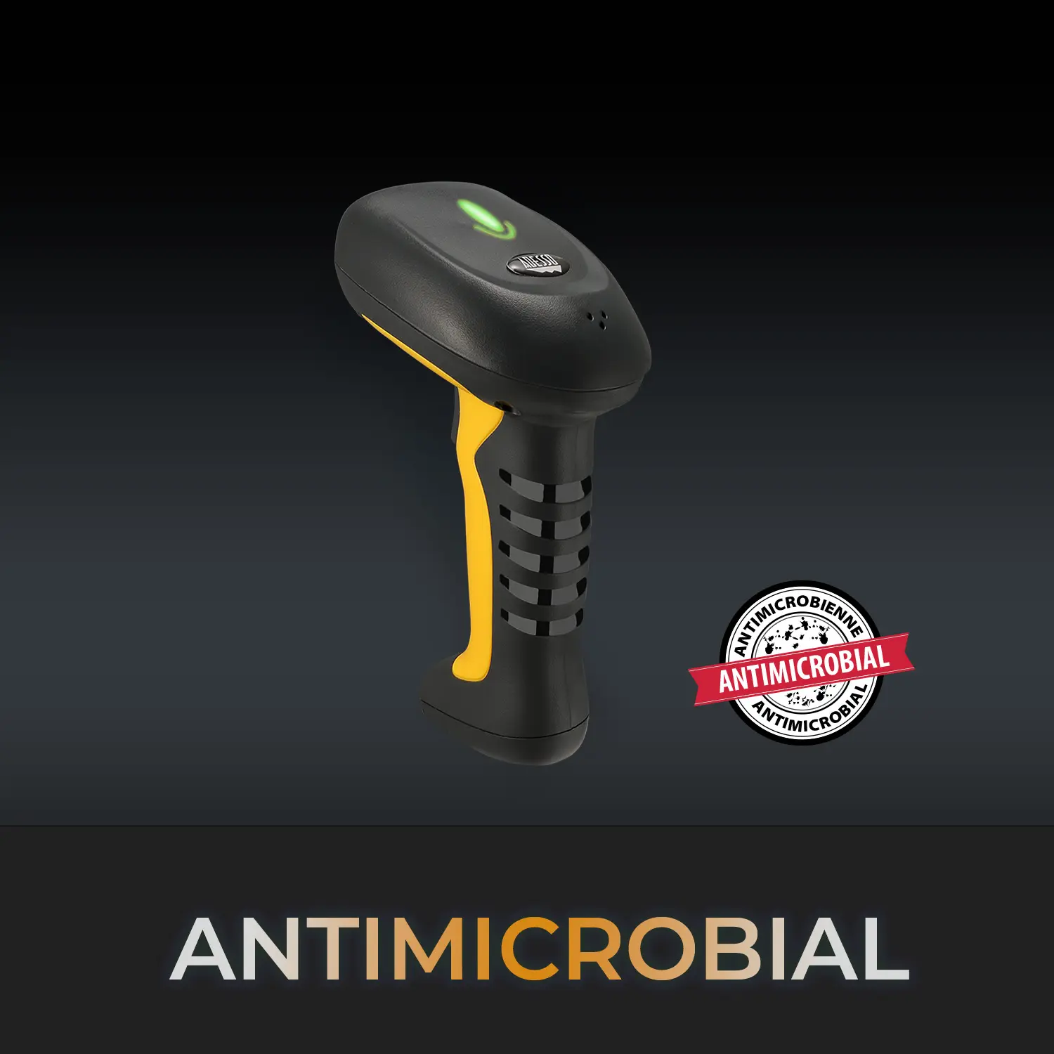 Bluetooth/2.4Ghz Dual mode Wireless Antimicrobial, Waterproof, 2D Industry Handheld Barcode Scanner, The Adesso NuScan 5200 is compatible with a wide range of 1D and 2D barcode symbologies and is the Dual mode 2.4GHz wireless and Bluetooth version of the NuScan 5200TB. With the built-in USB receiver inside its cradle, the NuScan 5200 is completely plug and play. NuScan 5200 is compatible with major 2D barcodes such as PDF 417, QR Codes, Data Matrix, and micro QR Code. Built with waterproof and antimicrobial substances