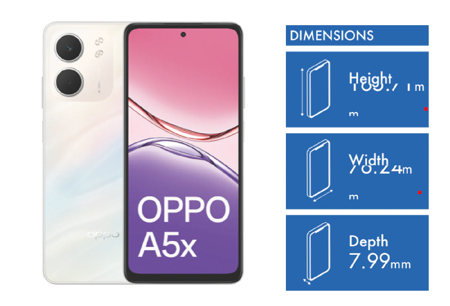 OPPO A5x 4G 128GB – Laser White ,6.67′, HD+, 60Hz, 4GB/128GB, 32MP/5MP, Dual SIM, 6000mAh, 2 Years Warranty.