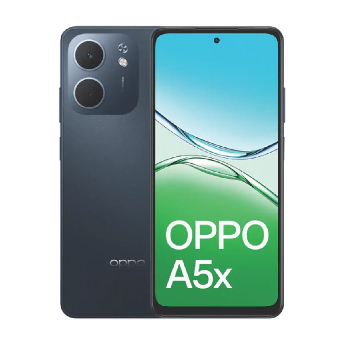 OPPO A5x 4G 128GB – Midnight Blue large 6.67″ 120Hz HD+ display, Snapdragon 6s Gen 1 4G, 6000 mAh battery with 45W SUPERVOOC®, 32 MP rear camera, IP65 water resistance, dual SIM support, and expandable storage.