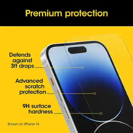 Save your screen with crystal-clear Premium Glass. Flawless and fortified, Premium Glass guards against scratches and splinters while letting the vibrant quality of your display shine through. The ultra-thin tempered antimicrobial glass screen protector is engineered to endure with advanced, fortified material technology to withstand drops up to 3ft. Plus, it’s fingerprint resistant, so you can touch, tap and swipe while your screen stays smudge-free. All the tools you need are included for simple installation. Premium Glass delivers advanced protection with peace of mind for your screen.