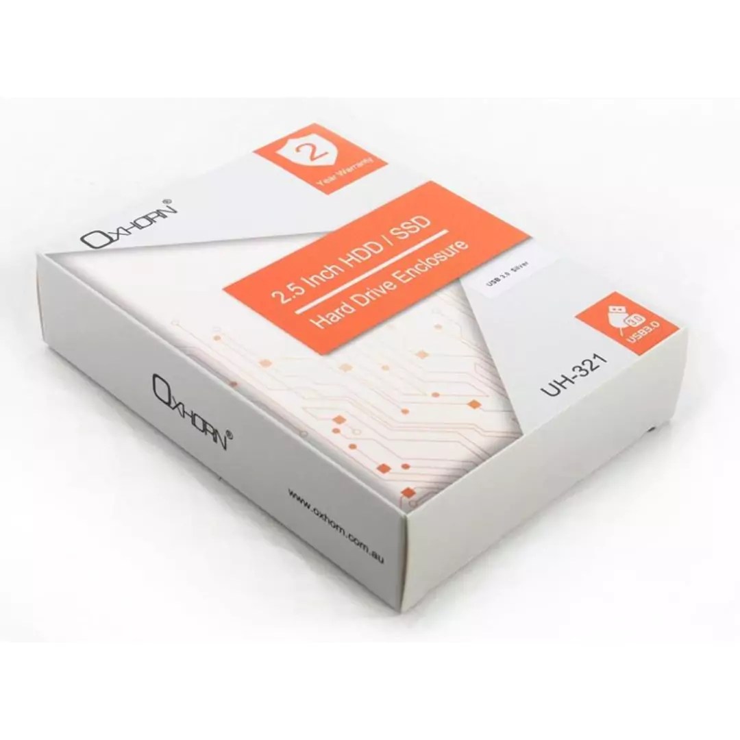 The Oxhorn USB 3.0 USAP 2.5? SATA HDD SSD Enclosure Silver USB3.0 Cable is a compact aluminum enclosure that converts any 2.5? SATA HDD or SSD into a high-speed external drive. With USB 3.0 and UASP support for up to 5Gbps transfer speeds, it offers fast, reliable data access and efficient heat dissipation. Compatible with drives up to 4TB and powered via USB, it?s a plug-and-play solution ideal for backups, storage expansion, and portable use?backed by a 2-year warranty.