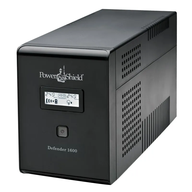 The PowerShield Defender UPS is a high-performance line-interactive uninterruptible power supply designed to protect computers, servers, networking devices, and office electronics from power outages, voltage fluctuations, and electrical surges. With a powerful 1600VA / 960W capacity, it provides reliable backup power, giving users enough time to safely save work and shut down equipment during unexpected blackouts
