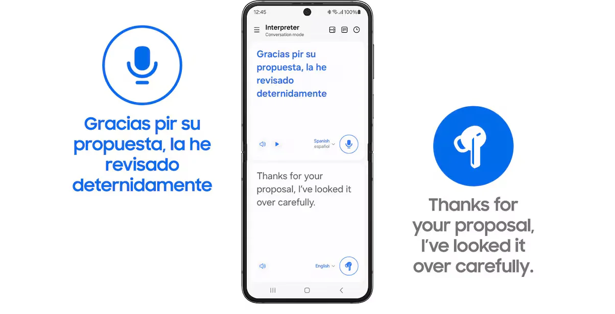 With Galaxy AI, understand the world like never before. See the translation on your Samsung Galaxy smartphone, and simultaneously hear your conversation interpreted in real-time through your Galaxy Buds3. Discover what it means to be truly free of language barriers. Once the app is open, the Interpreter feature will start up with the mode last used.