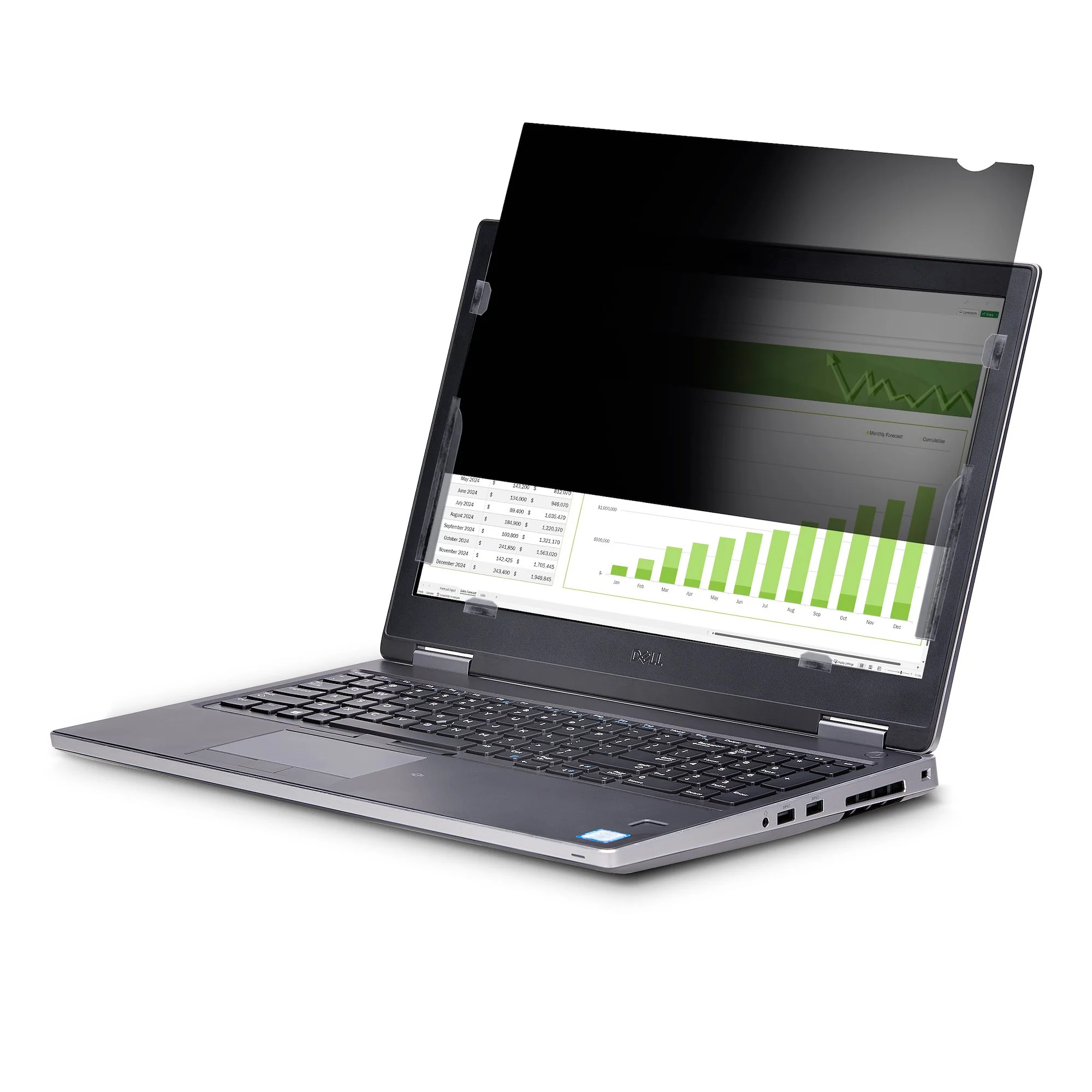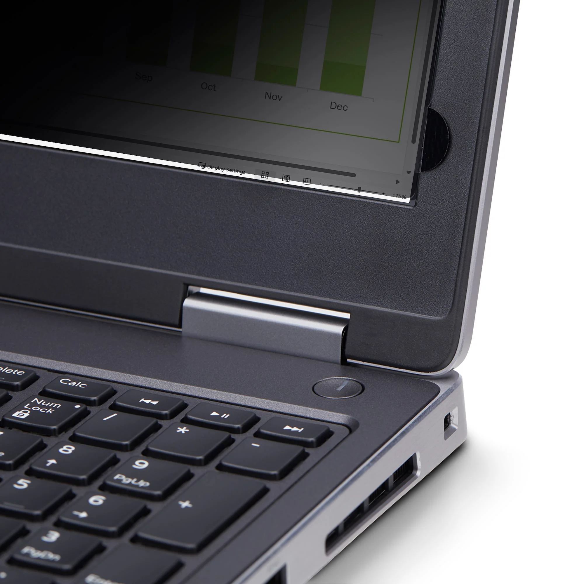 Install the privacy screen protector using the included adhesive strips or flip-up tabs. This unit is designed for use with displays that have raised bezels.