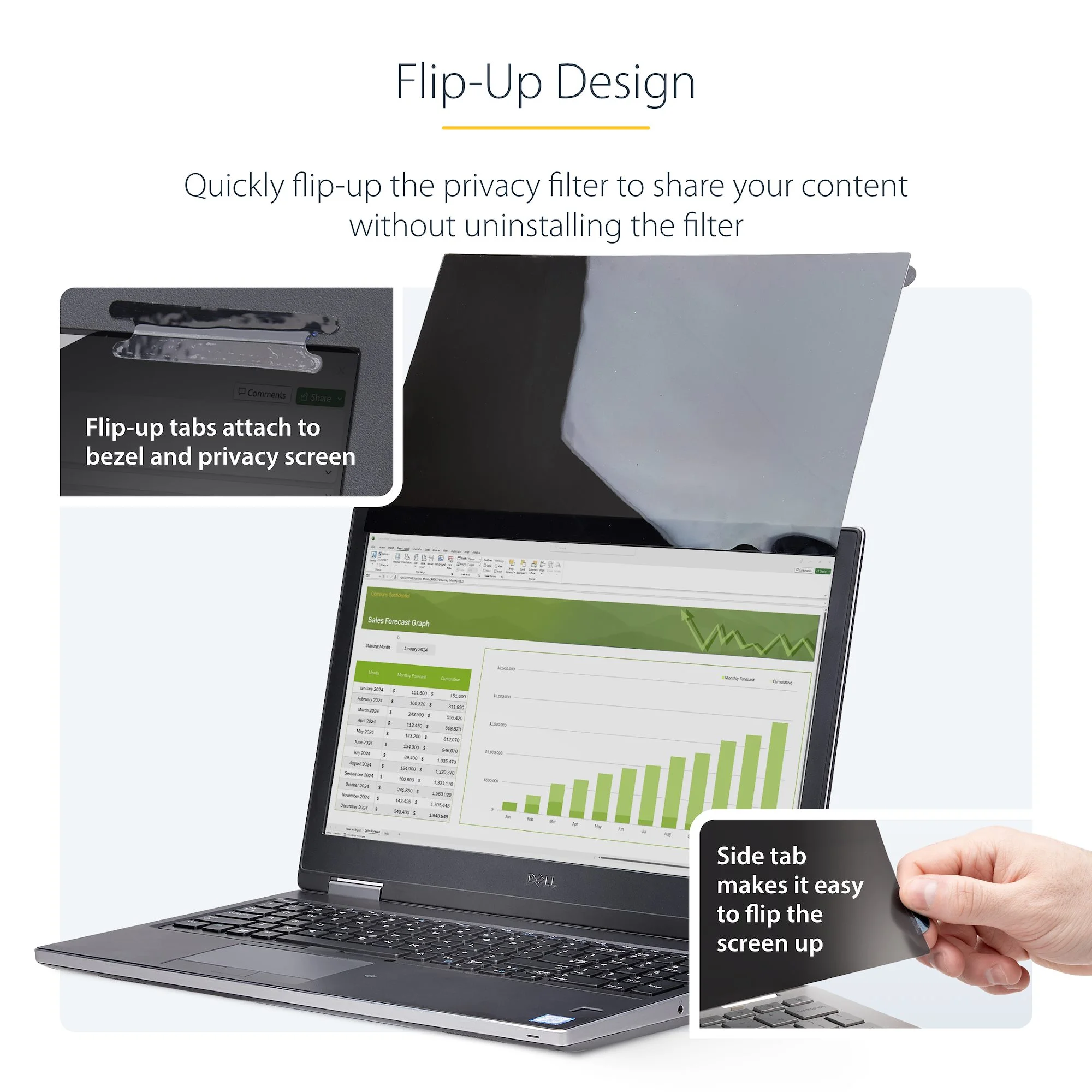 - FLIP-UP WITH TOUCH: Flip-Up mounting feature allows you to quickly lift-up the privacy filter to share contents without uninstalling the filter; Computer touch responsiveness is preserved by the ultrathin yet robust security shield, enabling seamless use