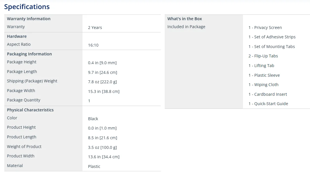 This Laptop Privacy Screen is designed to work with laptops with 16-inch displays and 16:10 aspect ratio.