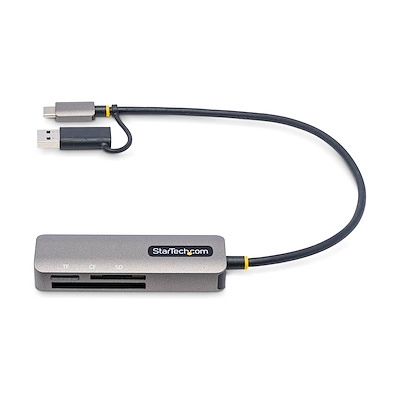 It features a 1ft (30cm) attached cable with a USB-C host connector and an integrated USB-A adapter for multi-device connectivity. The USB Card Reader is driver and software-free, and compatible with all operating systems, including Windows, macOS, Linux, ChromeOS, Android, and iPadOS.Â