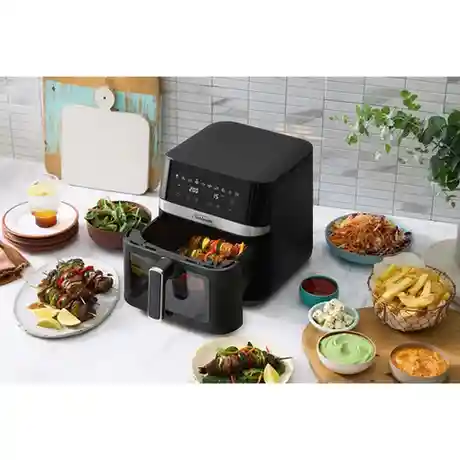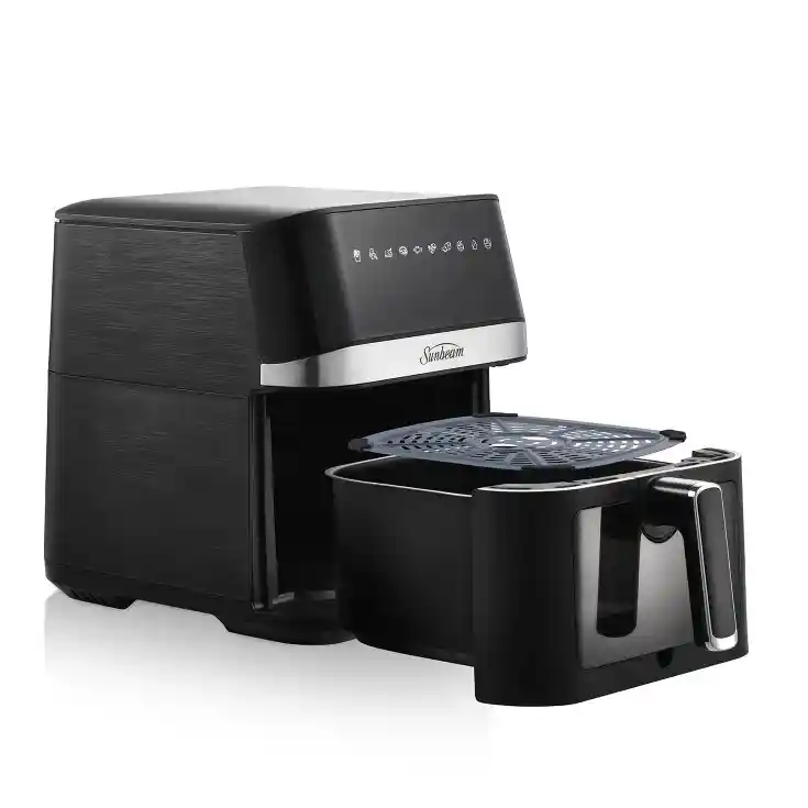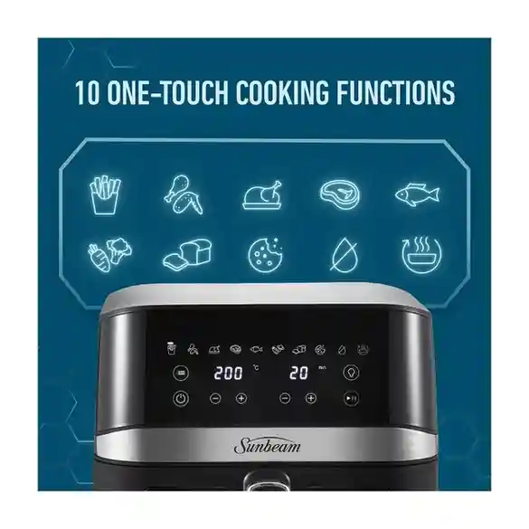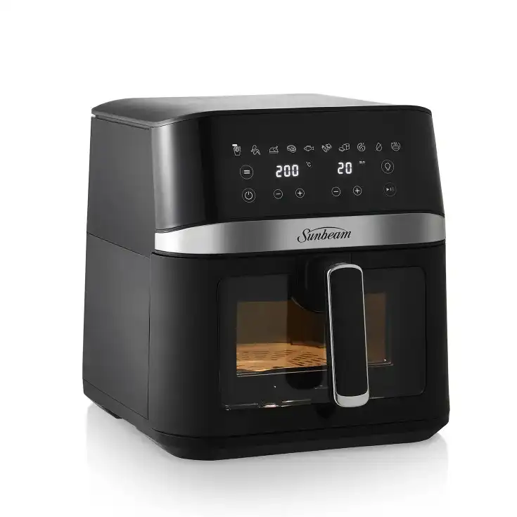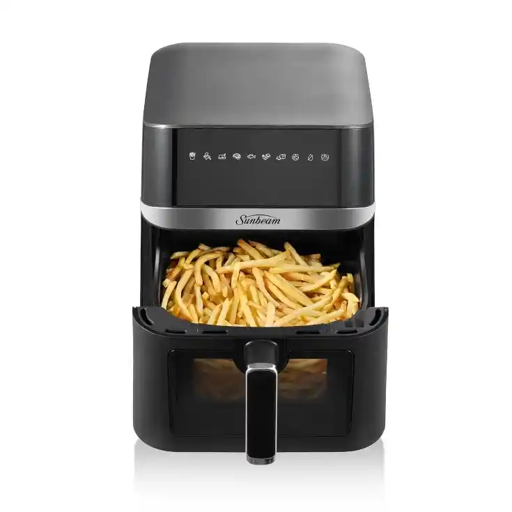 Sunbeam 6L Digital Diamondforce Air Fryer has a large viewing window & internal light. Non-stick DiamondForce coated tray. 6L Capacity, Compact Size. Nutricrisp Technology for Superior Performance. 10 Cooking Presets