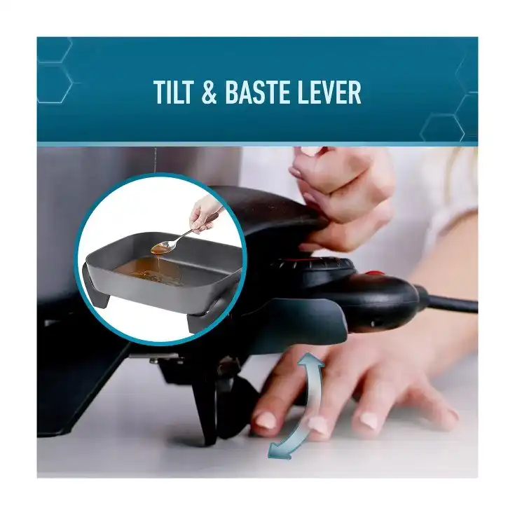 - Hands-free basting: The built-in Tilt and Baste lever tilts the frypan to allow hands-free basting, draining of fats whilst cooking, as well as easy serving of meals.
