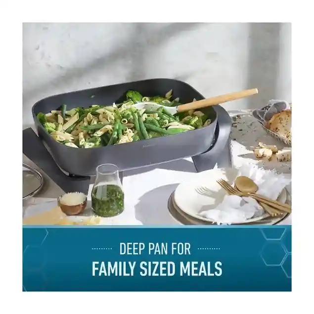 Sunbeam Diamondforce Frypan is reinforced with DiamondForce non-stick coating. 2 layers of engineered diamond particles in an interlocking matrix that is more durable than traditional non-stick cookware. 2400-watt element. Dishwasher safe.