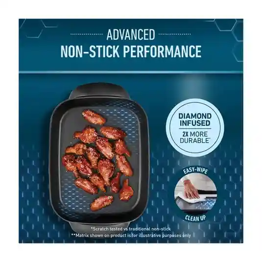 - DiamondForce™ non-stick coating: Designed and reinforced with a diamond-infused two-layer coating, DiamondForce™ is an innovation in non-stick coating technology. The engineered diamond particles create a unique and strong interlocking matrix creating a tougher coating that is two times more durable than traditional non-stick coating. Scratch tested and compared to traditional non-stick coating.