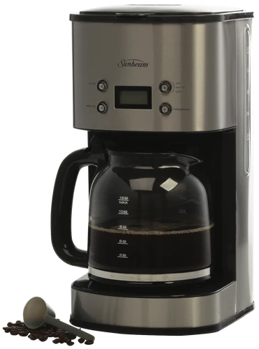 Enjoy fresh, delicious coffee every morning with the Sunbeam 12 Cup Drip Filter Coffee Machine. This stainless steel coffee maker brews up to 12 cups of coffee at a time, perfect for gatherings with family and friends or keeping the whole office energized. The programmable timer allows you to wake up to the inviting aroma of freshly brewed coffee. Simply add water and ground coffee into the machine the night before, set the timer, and a hot pot will be ready when you wake. The shower head evenly distributes water over the coffee grounds for optimal flavor extraction. The keep warm plate ensures your coffee stays hot for up to 2 hours after brewing completes. The removable filter basket and glass carafe make cleanup quick and easy. Brew coffee just the way you like with the strength selector dial. This drip coffee machine’s compact footprint saves precious counter space in your kitchen. Experience the convenience of hot, tasty coffee anytime with the Sunbeam 12 Cup Drip Filter Coffee Machine. The manufacturer’s part number for this product is PC7900. Check out this coffee maker to start your mornings right.