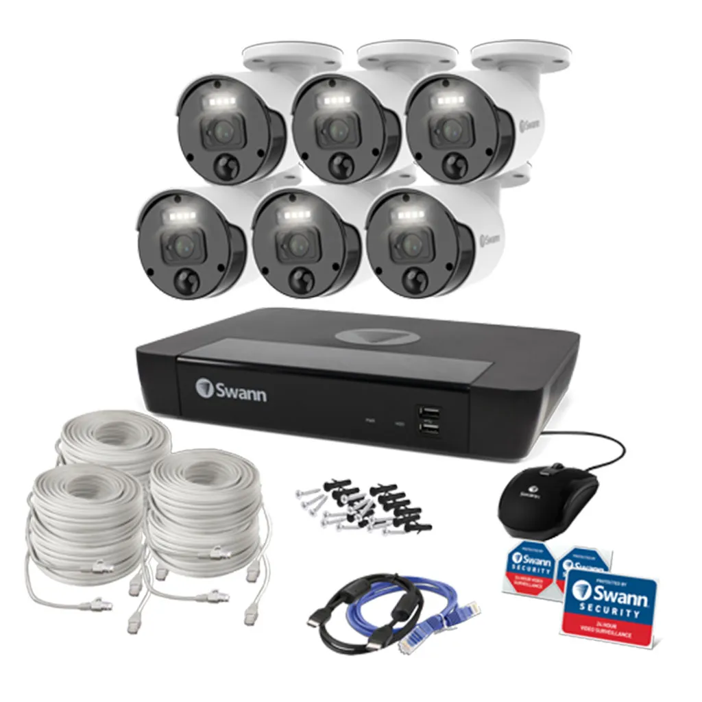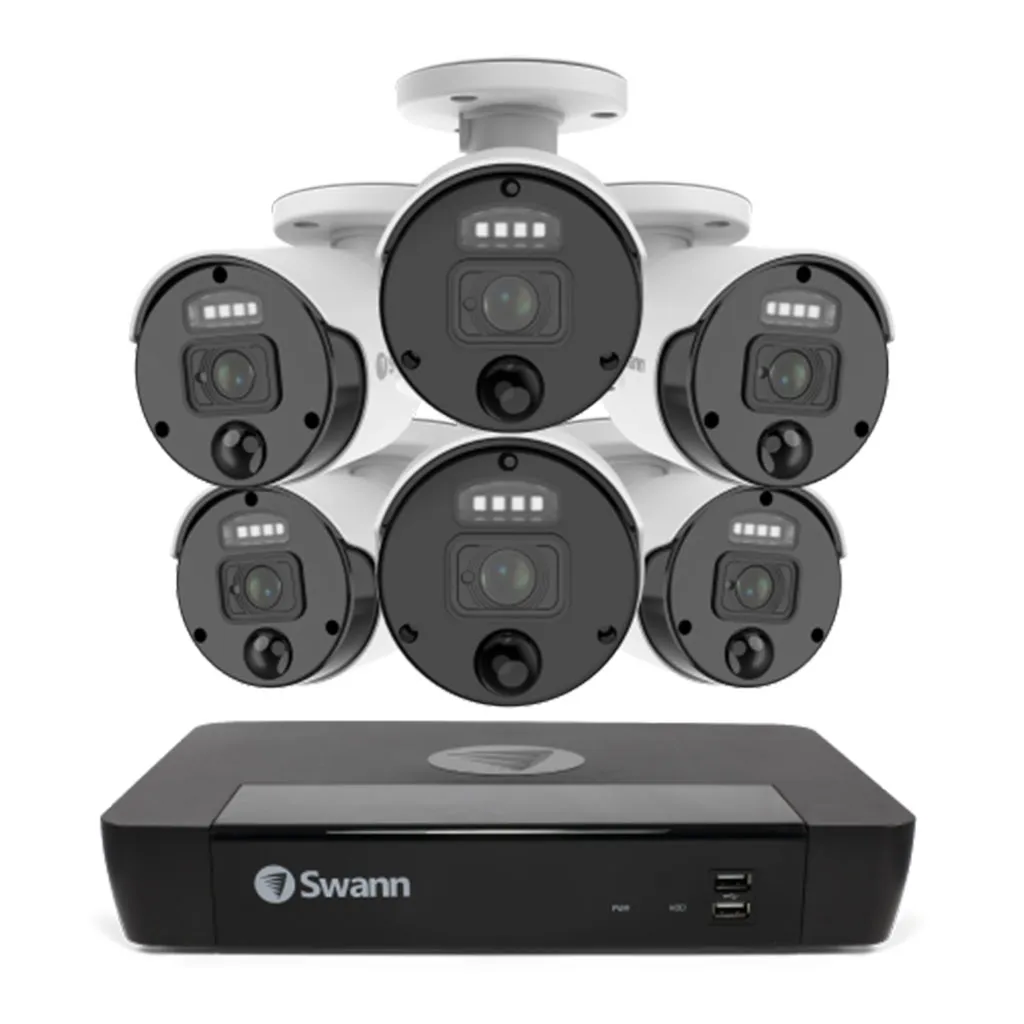 Secure your home or business with the Swann 6 Camera 8 Channel 4K Master-Series NVR Security System Featuring upscaled 4K video, True Detect™ heat & motion sensing, PoE installation, 130 ft night vision, and a 2TB HDD for continuous recording